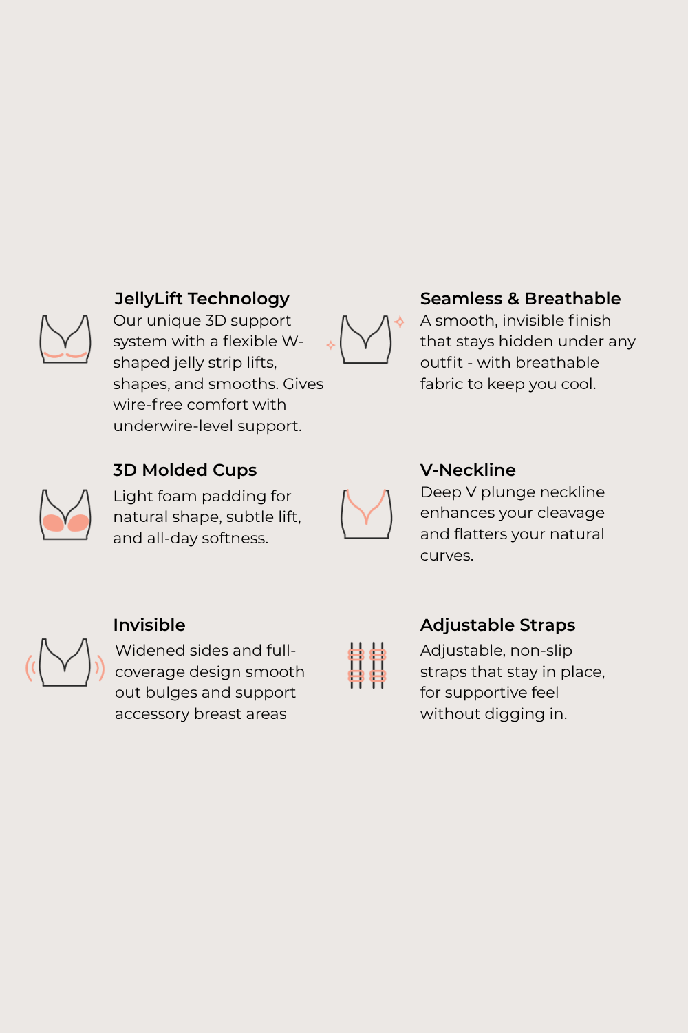 Featuring innovative Jelly Technology for 360° support and natural shaping — without the digging or discomfort of traditional underwires.